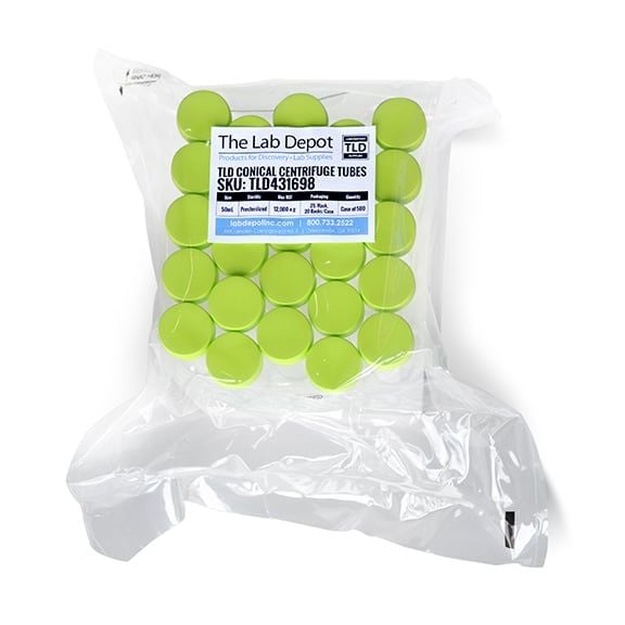 The Lab Depot's Polypropylene Conical Bottom Centrifuge Tubes with green screw caps are a reliable and versatile choice for various laboratory applications. These tubes are available in 15 mL and 50 mL sizes, both offering sterile options and convenient packaging in racks or bags. With features like printed graduations, a writing area for sample identification, and compatibility with standard equipment, these centrifuge tubes are designed to streamline laboratory workflows.