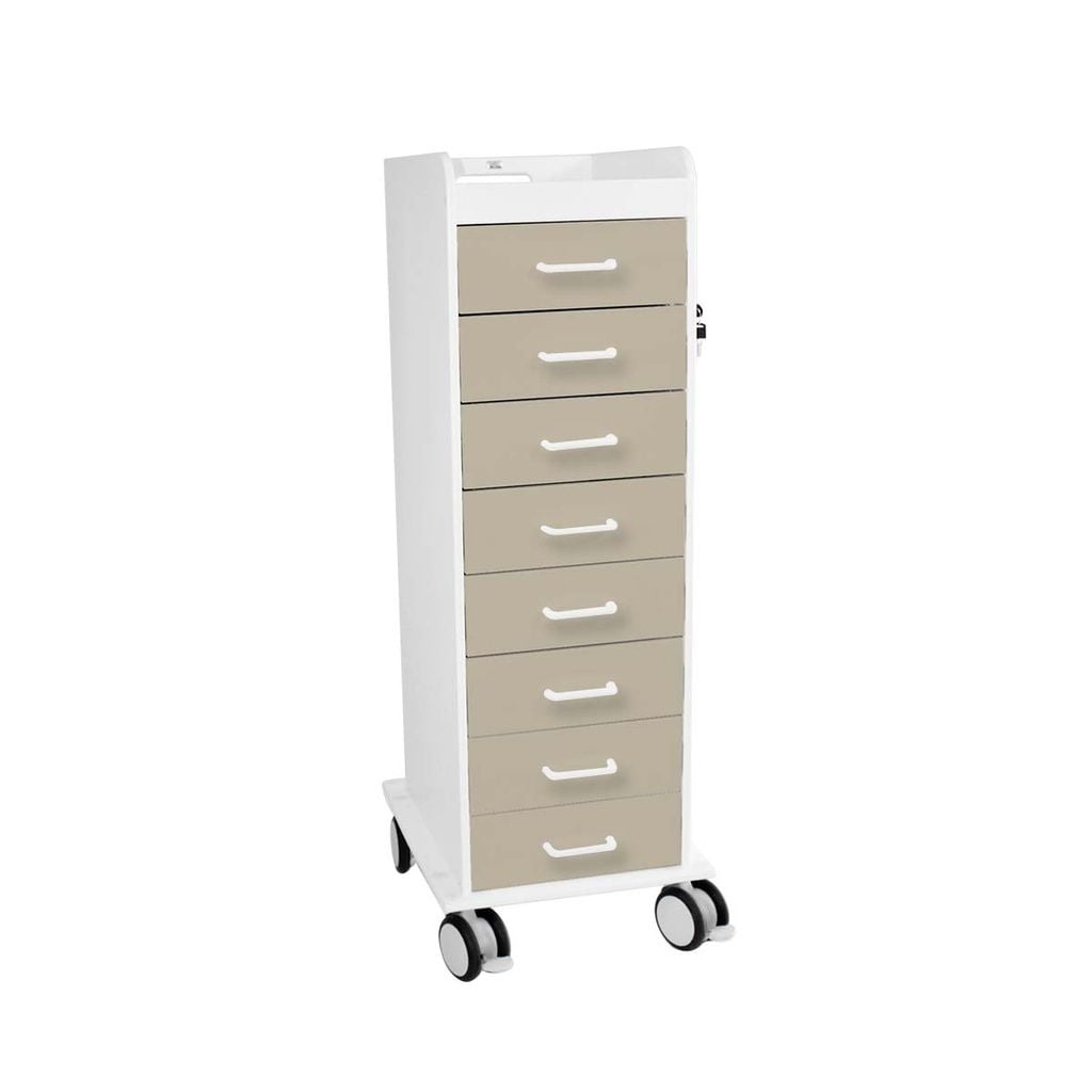 8 total locking drawers for secure, segmented supply storage