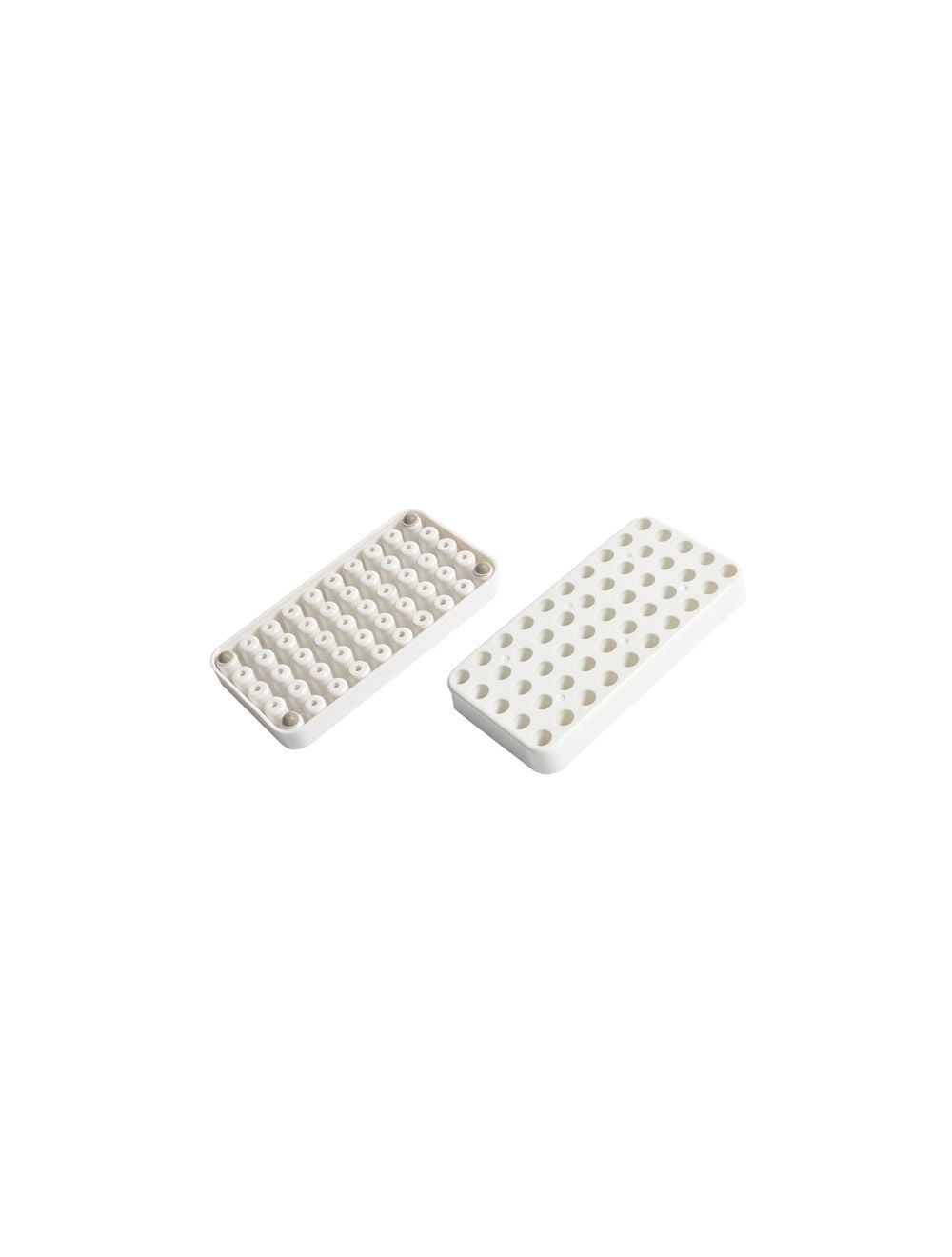 This durable and autoclavable Cryo rack can hold 50 vials. The unique design at the bottom of each well lets vials be unscrewed without removing them from the rack. The rack features an alpha-numeric index and anti-skid rubber feet.