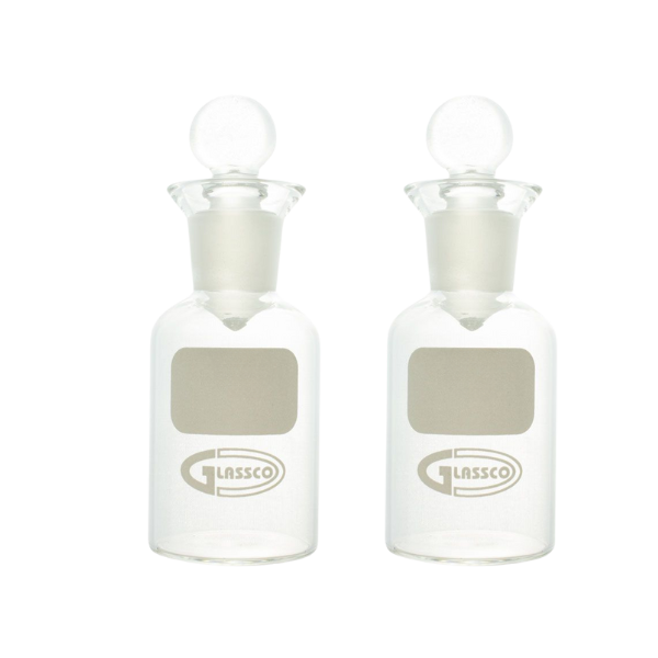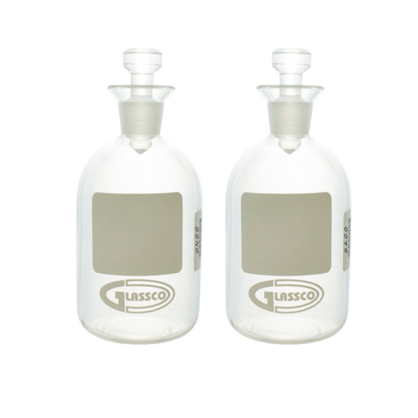 BOD Bottles are used for incubating diluted samples of clean, waste, effluent, and polluted water during the 5-day BOD (Biochemical Oxygen Demand) test. These glass bottles are unnumbered and feature a pennyhead stopper.